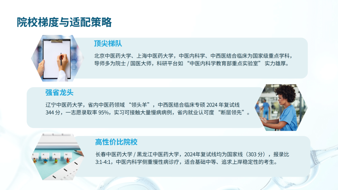 马占泽老师解析了中西医临床医学考研可报考的中医内科学、中西医结合临床等专业方向,以及顶尖、强省龙头、高性价比三类梯度院校的适配策略;针对性别给出了女生在中医妇科学、针灸推拿学等专业的优势方向,并提醒避开手术搬运风险等“坑点”;讲解了通过官方与非官方渠道获取目标院校数据的方法,还剖析了压分迹象及一志愿保护的核心证据。最后基于实战角度出发,从方向锁定、院校筛选、复试准备三阶段给出建议,助力考生科学规划、高效备考,在考研征程中精准突围。