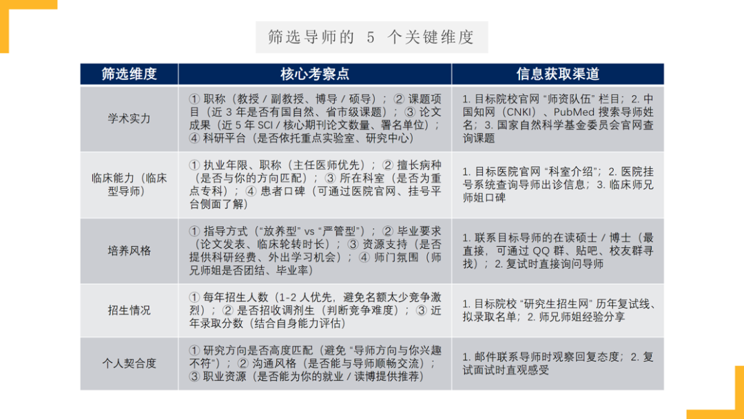 王子硕老师围绕考研研究方向及导师选择,先从职业目标、个人兴趣优势、现实条件等方面指导考生进行自我定位与需求梳理;接着详细介绍了临床类和基础类等研究方向的分类、热门细分领域、适合人群及就业场景,助力考生锁定研究方向;然后讲解了学术型、临床型、平衡型三类导师的特点,从学术实力、性格等五个关键维度筛选导师,并明确联系导师的“黄金时机”与注意事项;最后给出避坑指南,提醒考生避免新手常犯的四大错误,还梳理了自我评估、锁定方向、筛选导师、主动联系的决策流程。