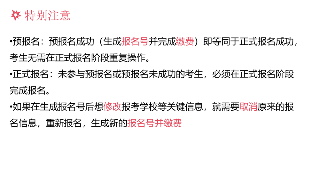 田子仝老师针对考研报考相关问题进行解答,明确预报名志愿在正式报名时可以修改;详细阐述了考研预报名和正式报名在时间、对象、目的上的区别,还强调了预报名成功后无需重复操作、修改关键信息需重新报名等特别注意事项;指出考研报考学校只能选择一个学校的一个专业;同时讲解了出分后判断能否进复试的方法,包括根据学校公布的初试排名或院校近3年复试分数及国家线来判断,不同分数段考生也需采取相应策略。