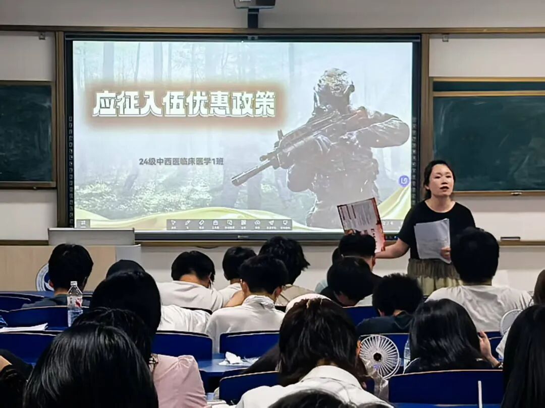 为响应国家征兵号召,强化学生国防意识与家国情怀,激发学生投身军旅、献身国防的热情,6月16日,辽宁中医药大学杏林学院结合系大一全体师生在6号教学楼进行征兵宣传。此次宣传活动的顺利开展,不仅让同学们加深了对征兵政策的了解,还激发了同学们参军入伍的热情,同时强化了学生们保家卫国的责任感和使命感。