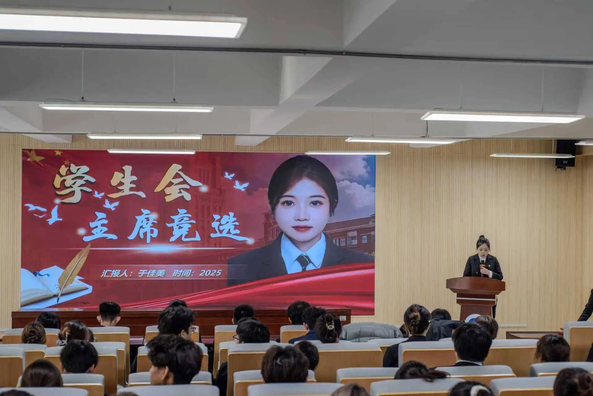 第二次全体代表会议上,各位代表严格履行职责,认真审议并表决通过了《学生委员会主席团及委员选举办法》与候选人名单。随后,主席团及学生委员会候选人依次登台述职竞选,展现出饱满的热情与清晰的工作思路。最终,全体代表以无记名投票的方式,公平公正完成选举,切实保障了每一位代表的民主权利,为学生会注入新鲜且有力的骨干力量。