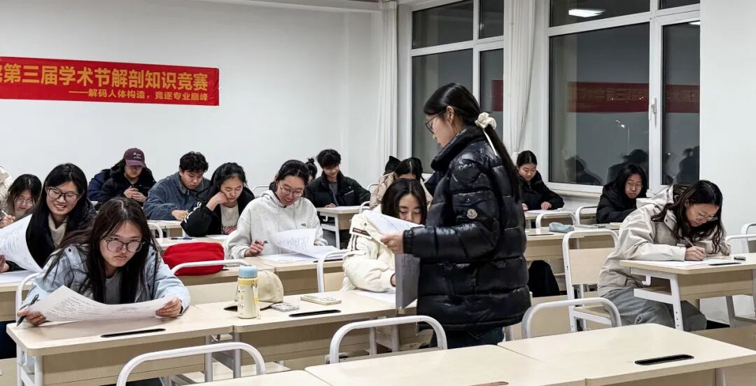 “沙沙沙”的写字声是赛场的主旋律!初赛采用笔试形式,考题覆盖骨骼、肌肉、内脏、神经等系统解剖核心知识点,既要精准记忆“肱骨的解剖颈位置”,又要灵活辨析“迷走神经的分支分布”。