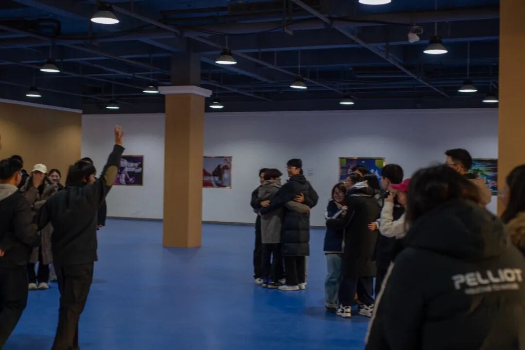 “桃花桃花就要开!”“桃花桃花几朵开?”主持人的口令刚落,全场同学迅速围成一个大大的圆圈,脚步轻快地走动起来。听到具体数字后,大家立刻转身寻找伙伴紧紧相拥,三人团、六人抱,无论是否熟悉,都毫不犹豫地伸出双臂。每一个温暖的拥抱都打破了隔阂,让心与心的距离在欢声笑语中不断拉近,现场暖意融融。