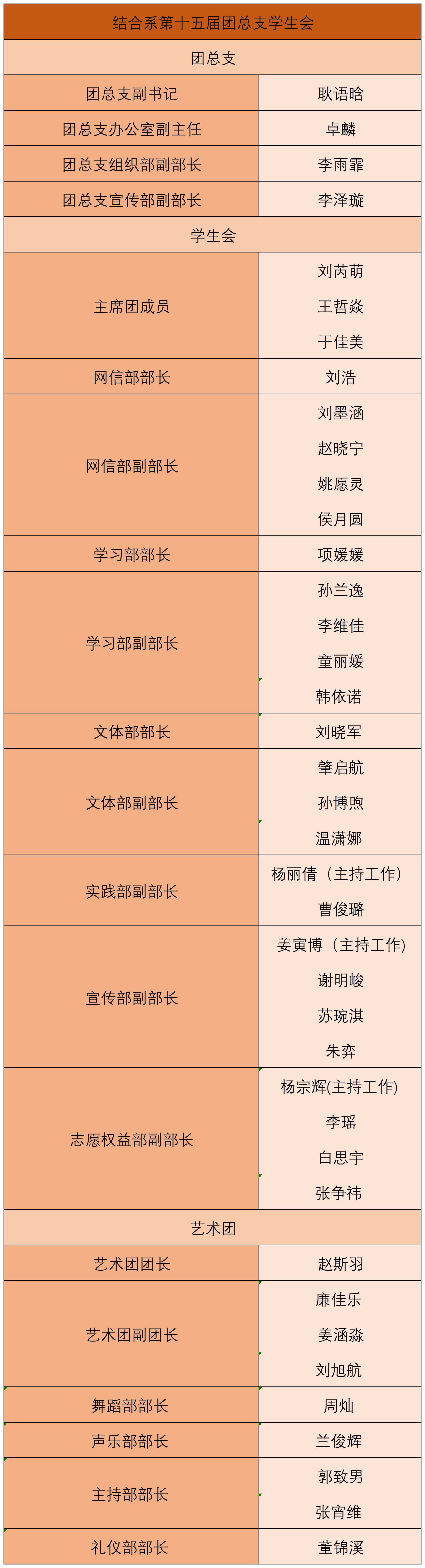 结合系|第十五届团总支学生会成员名单正式公布
